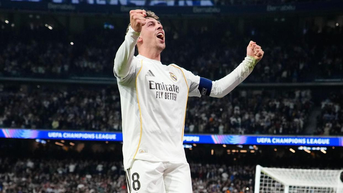 巴尔韦德在伯纳乌22分钟内完成帽子戏法,帮助皇马在欧冠1/8决赛首回合占据巨大优势。这位乌拉圭中场是皇马队史首位在欧冠上演帽子戏法的中场球员,一战将自己欧冠生涯进球数翻倍。